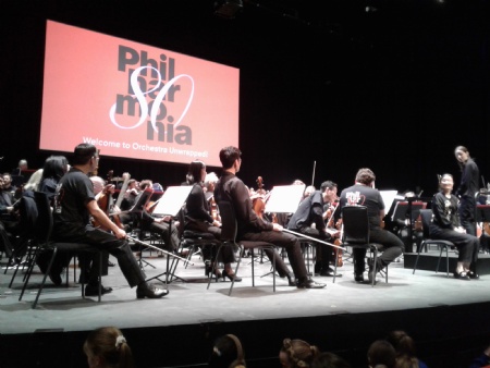 The artwork that we created of a 'futuristic orchestra' was shown on the big screen in front of the audience of hundreds of school children. We were so proud when pointing out our school's artwork!