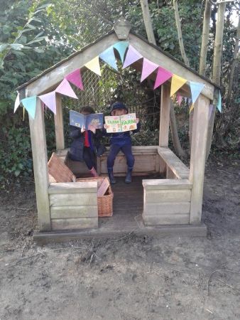 To begin our topic 'Once upon a time' the children immersed themselves with stories. Enjoying them outside as well as in.